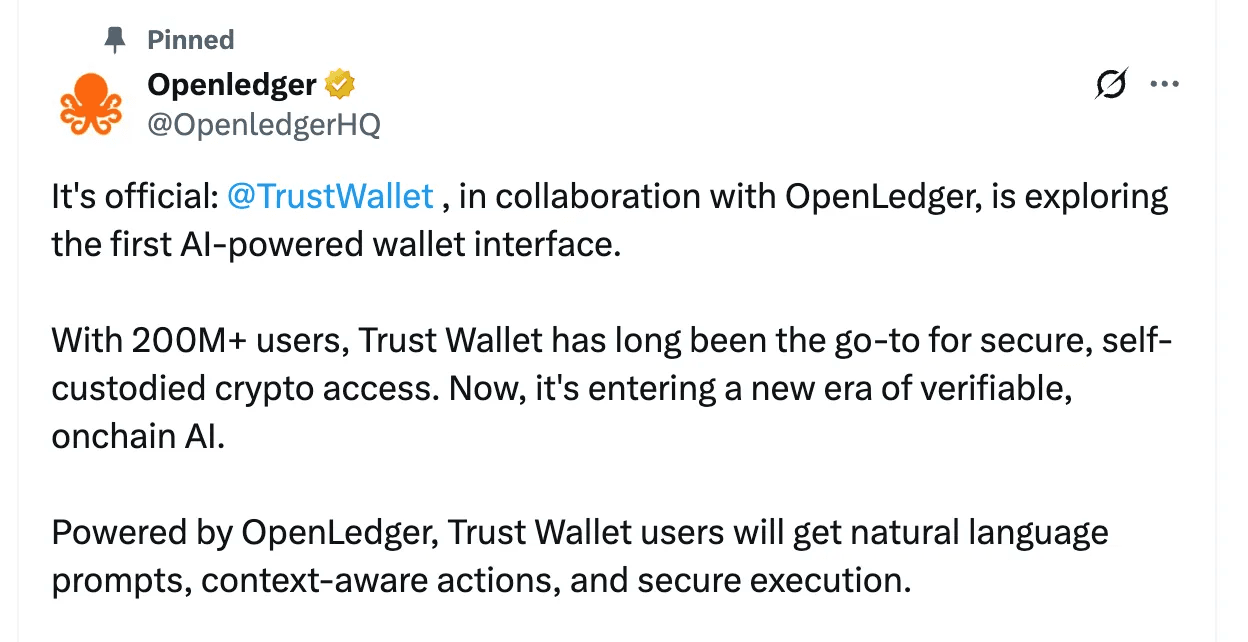 Openledger ha annunciato una partnership con Trust Wallet per creare la prima interfaccia di portafoglio alimentata da AI.