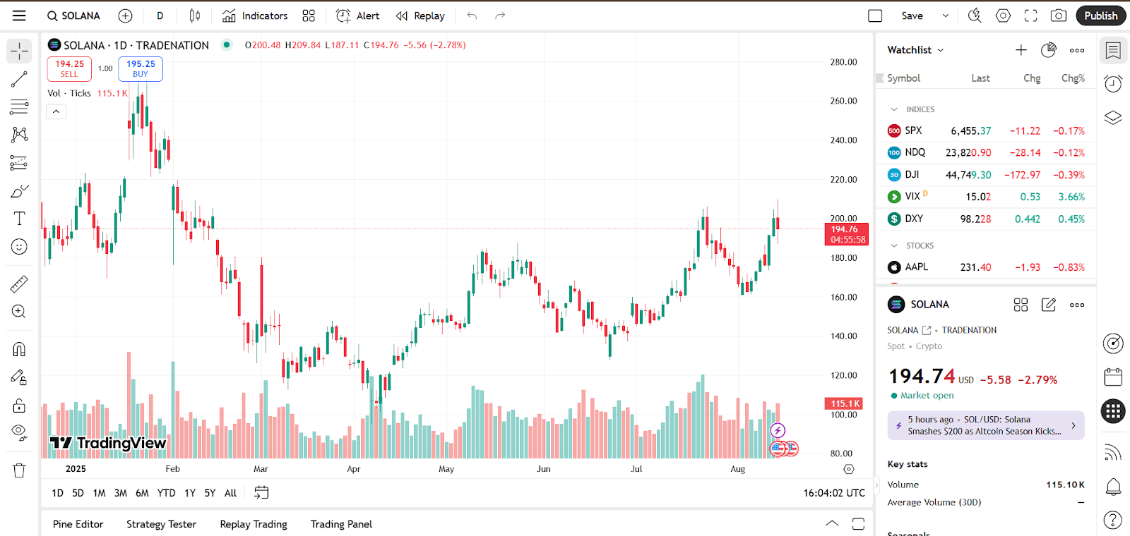 Nonostante il prezzo di Solana sia attualmente vicino a 195 dollari, il suo aumento è significativamente inferiore a quello di altri progetti blockchain. Anche se il prezzo continua a oscillare, le sue prestazioni sono relativamente deludenti rispetto ad altri asset in rapida crescita.