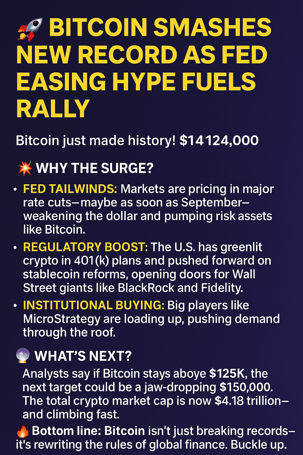 🔥 In sintesi: il Bitcoin non sta solo battendo record—sta riscrivendo le regole della finanza globale. Preparati.