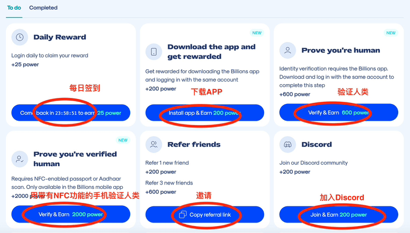 7⃣️Questi sono tutti i tutorial di Billions. Ci sono molti compiti, non è necessario completarli tutti in una volta, si consiglia di completare almeno “check-in quotidiano”, perché questo è il compito più semplice. Se ci sono punti poco chiari, sentitevi liberi di lasciare un commento per discutere.#Billionsnetwork