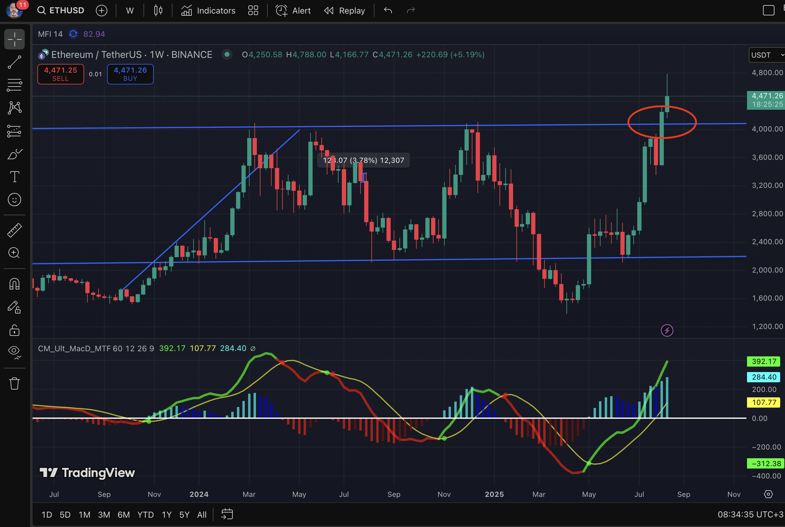 — ETH sopra 7SMA ($4,463) e 30SMA ($ 3,900), MACD & RSI confermano una tendenza rialzista.