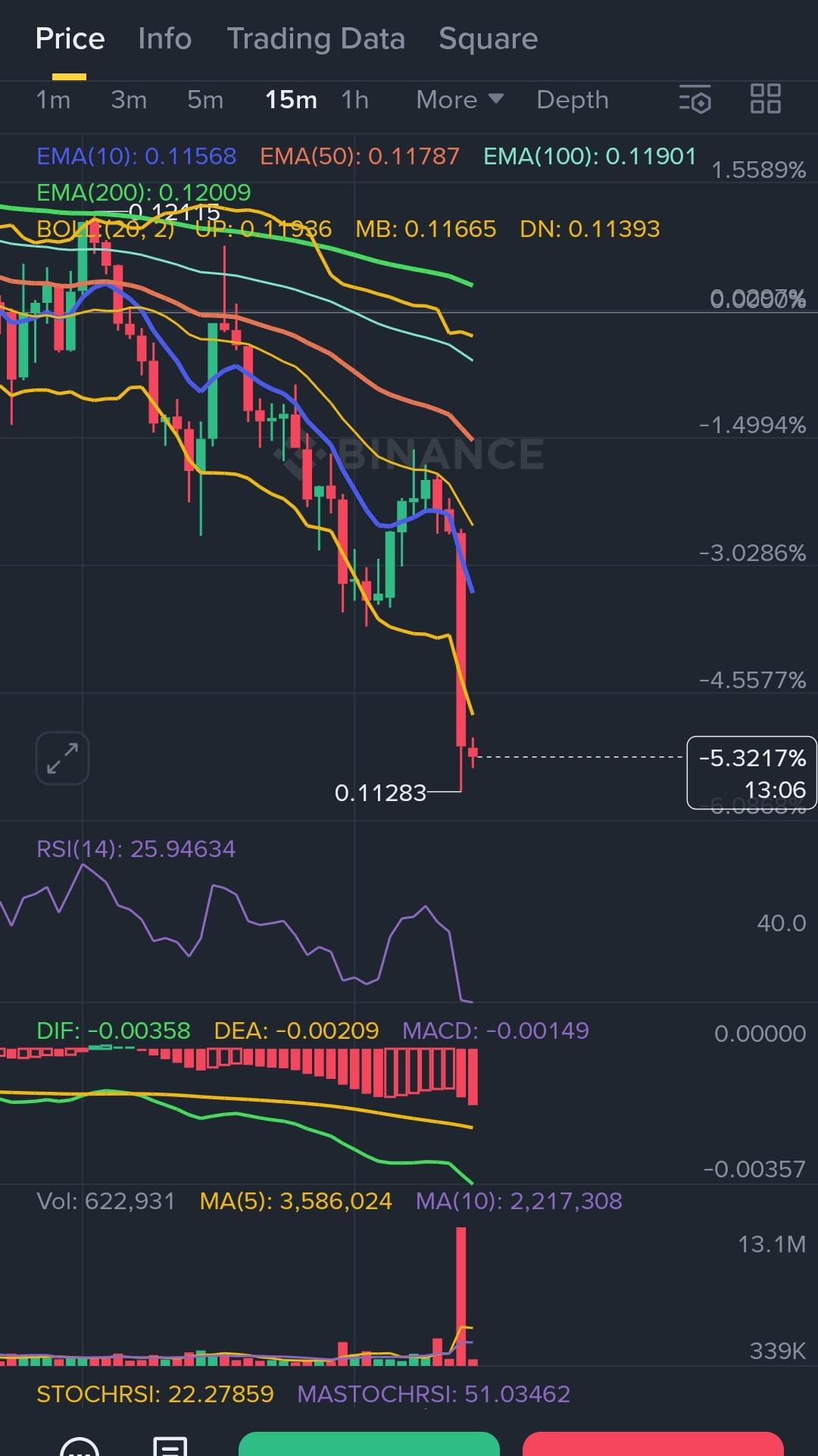 - TP2: **0.11630** (2.7% - mid Bollinger)