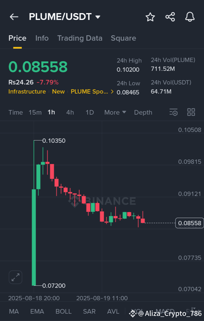 Dopo un forte rally da $0.0720 → $0.1035, $PLUME sta mostrando chiara debolezza 😮💨