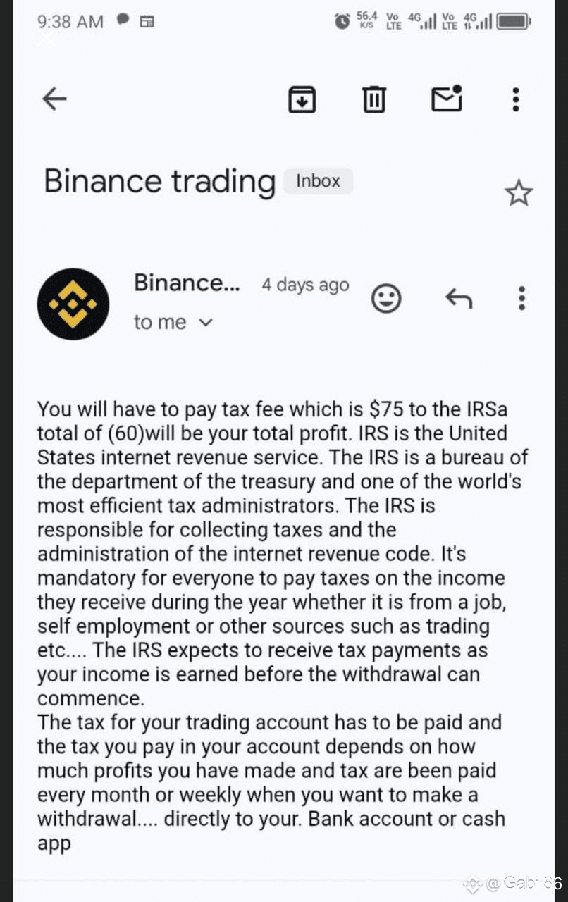 Negli ultimi tempi circolano sempre più email false ✉️ che fingono di provenire da piattaforme di trading o da enti ufficiali come l’IRS 🏛️. In queste comunicazioni viene richiesto di pagare una tassa anticipata per poter ritirare i propri guadagni: si tratta di una truffa 🚫.