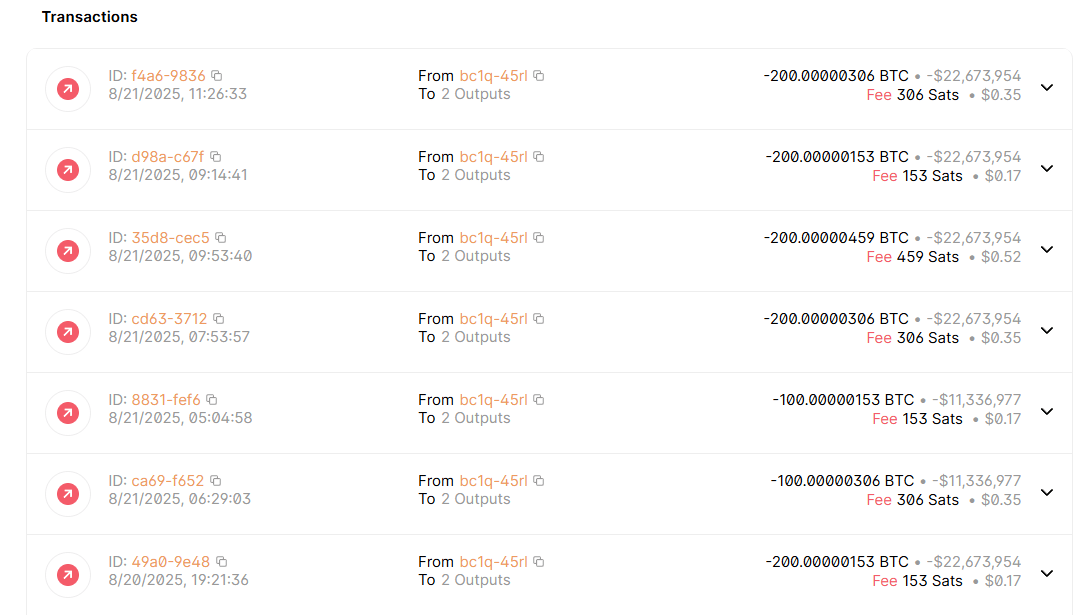 Transazioni del portafoglio “bc1ql”. Fonte: Blockchain.com