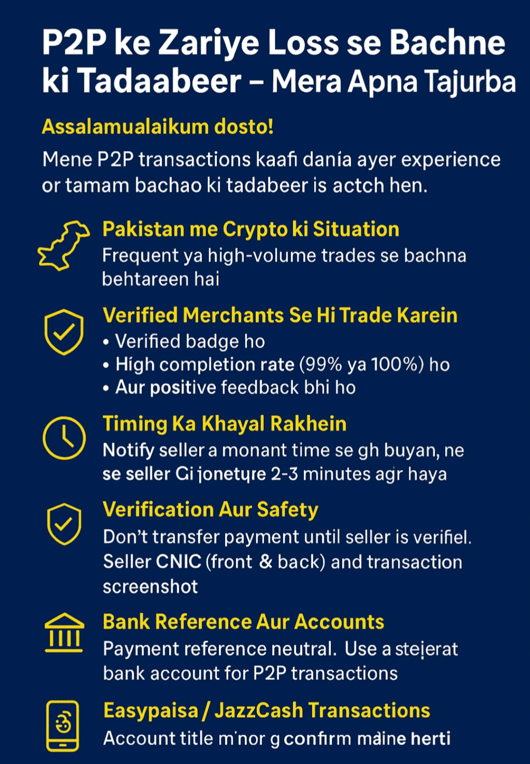 Assalamualaikum amici! Anche io ho commesso molti errori nelle transazioni P2P, e oggi condividerò con voi tutte le cose che ho scoperto in questo viaggio. Coloro che sono principianti, devono leggere questi suggerimenti, in urdu e inglese