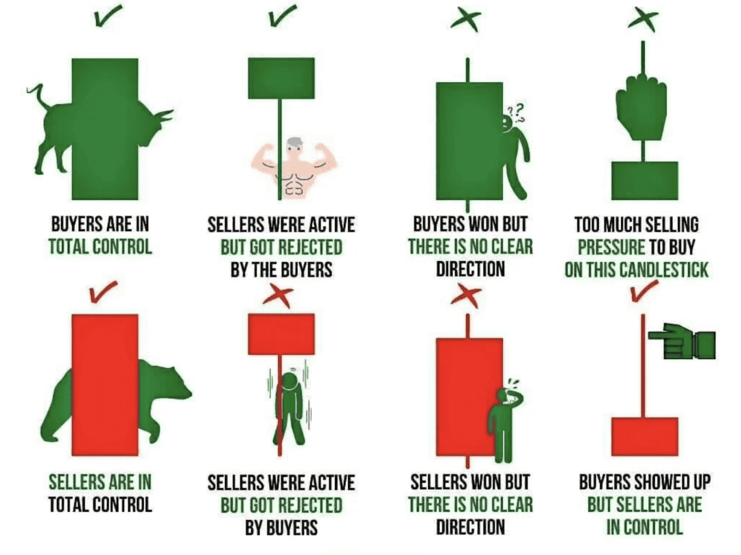 Lunghe ombre = rifiuto (gli acquirenti o i venditori hanno provato ma hanno fallito).