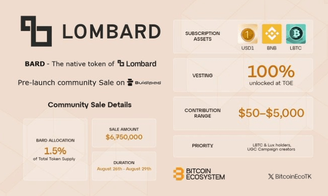 La vendita comunitaria di Lombard ($BARD) è considerata un “top di gamma per le nuove emissioni”, con l'approvazione della piattaforma Buidlpad + i bonus dell'ecosistema Bitcoin, è molto probabile che ci sarà un nuovo decollo! Gli interessati affrettatevi a mettere nei preferiti + impostare un promemoria, il 26 ci si scatena!