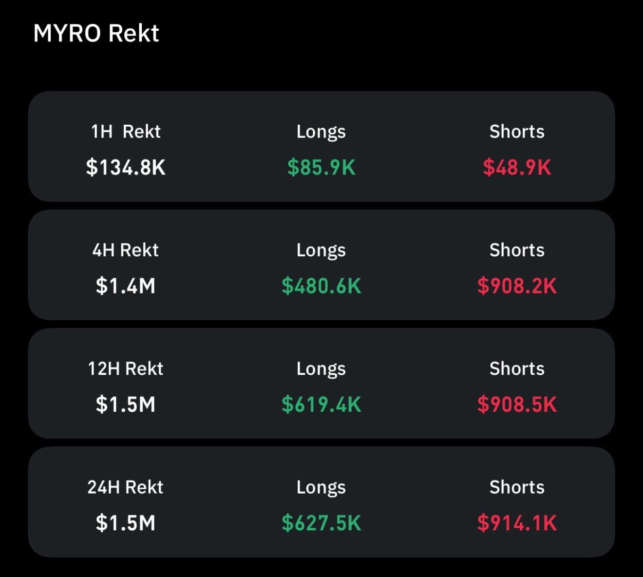 Al momento della scrittura, MYRO è scambiato a circa $0.08, in aumento di oltre il 15% nelle ultime 24 ore, secondo i dati di CoinMarketCap.