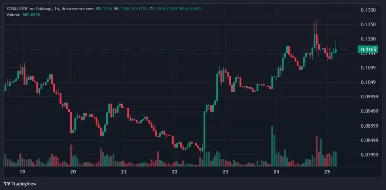 Il denaro intelligente e i grandi investitori hanno cominciato a fluire, spingendo ZORA a un aumento del 46% in un solo giorno, raggiungendo un massimo storico di 0.14 dollari.