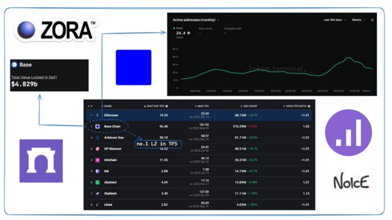 Negli ultimi anno, la competizione nel settore dei Layer 2 è stata intensa, ma Base è riuscita a emergere, attirando oltre 4,9 miliardi di dollari di valore bloccato e coltivando un ricco ecosistema di applicazioni DeFi, NFT e SocialFi in rapida crescita.