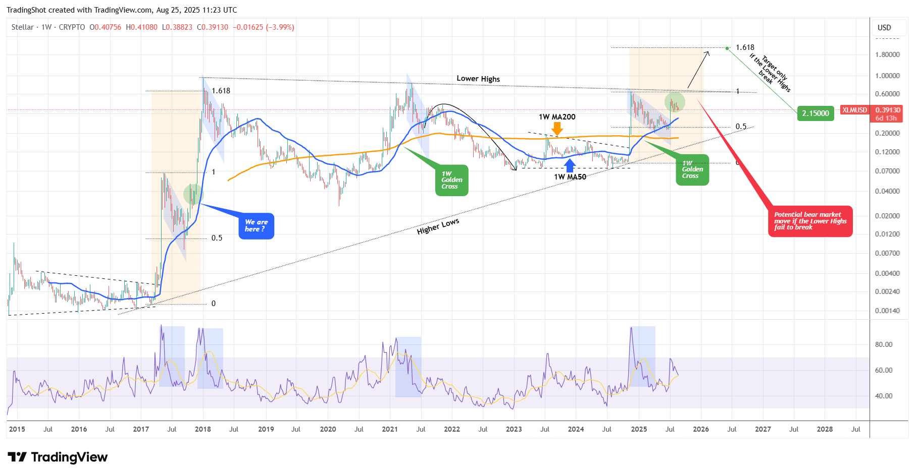 È necessaria attenzione poiché l'ultimo Golden Cross settimanale è avvenuto durante l'ultimo ciclo e ha portato al suo massimo poche settimane dopo.