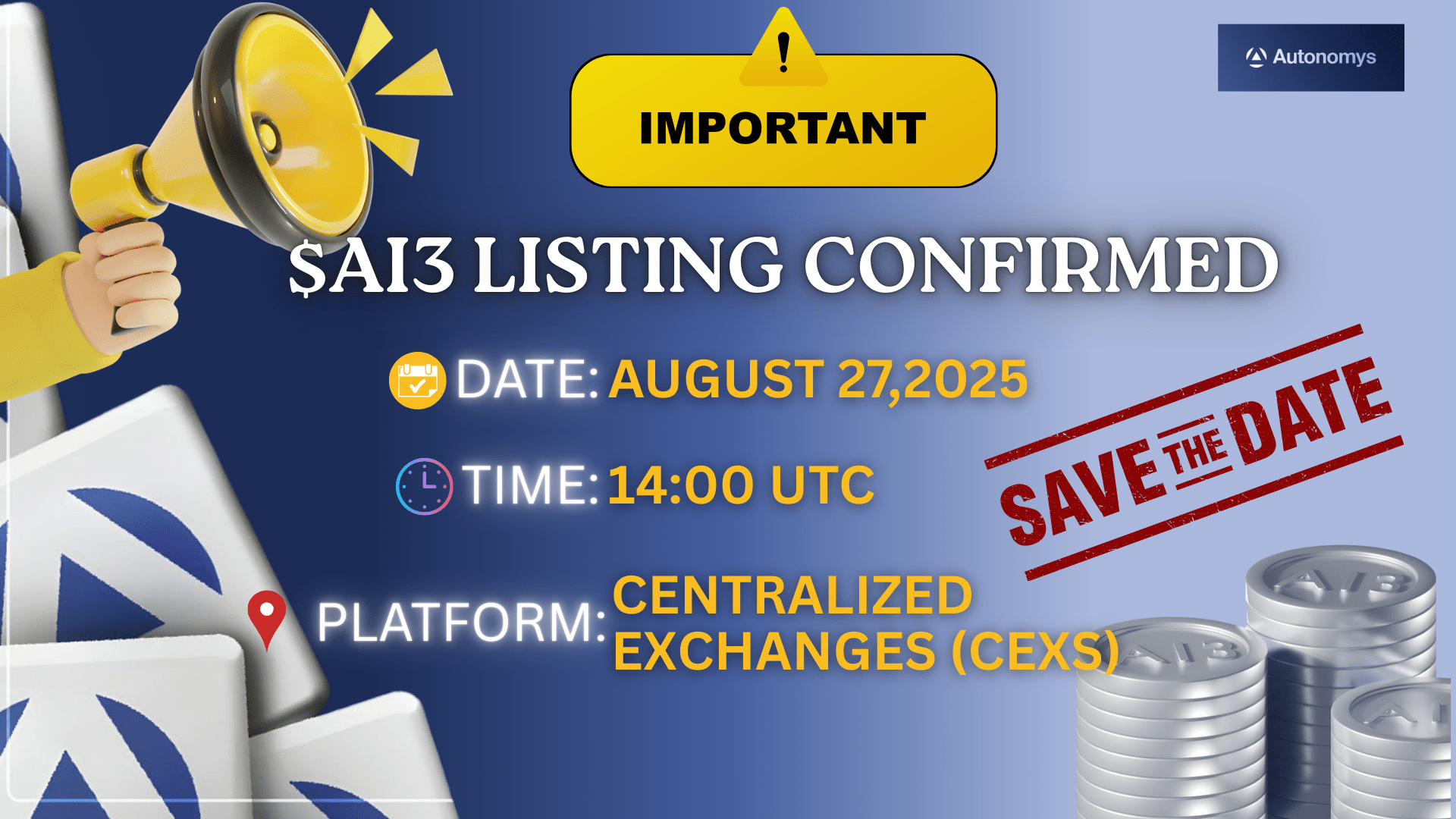 $AI3 sarà lanciato sugli scambi il 27 agosto alle 14:00 UTC, segnando un enorme traguardo per @AutonomysNet e il futuro di Web3 + IA.