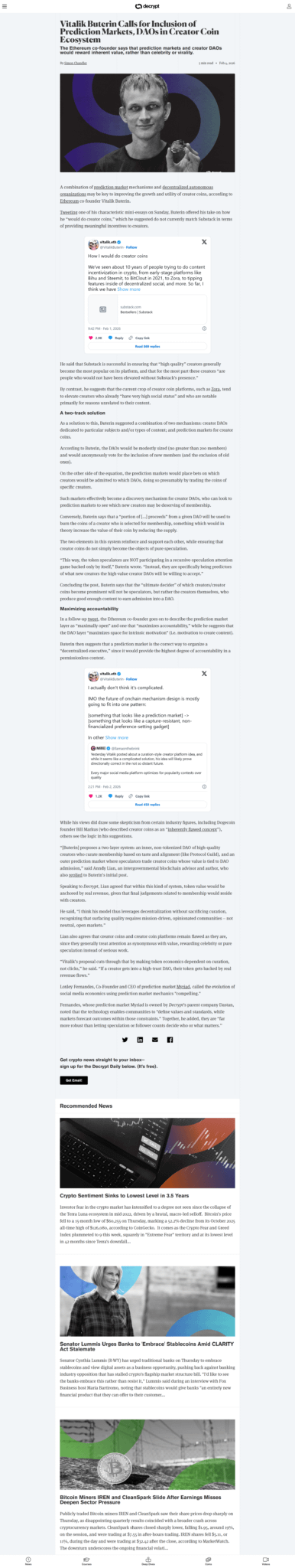 Fonte: https://decrypt.co/356902/vitalik-buterin-calls-for-inclusion-of-prediction-markets-daos-in-creator-coin-ecosystem?amp=1