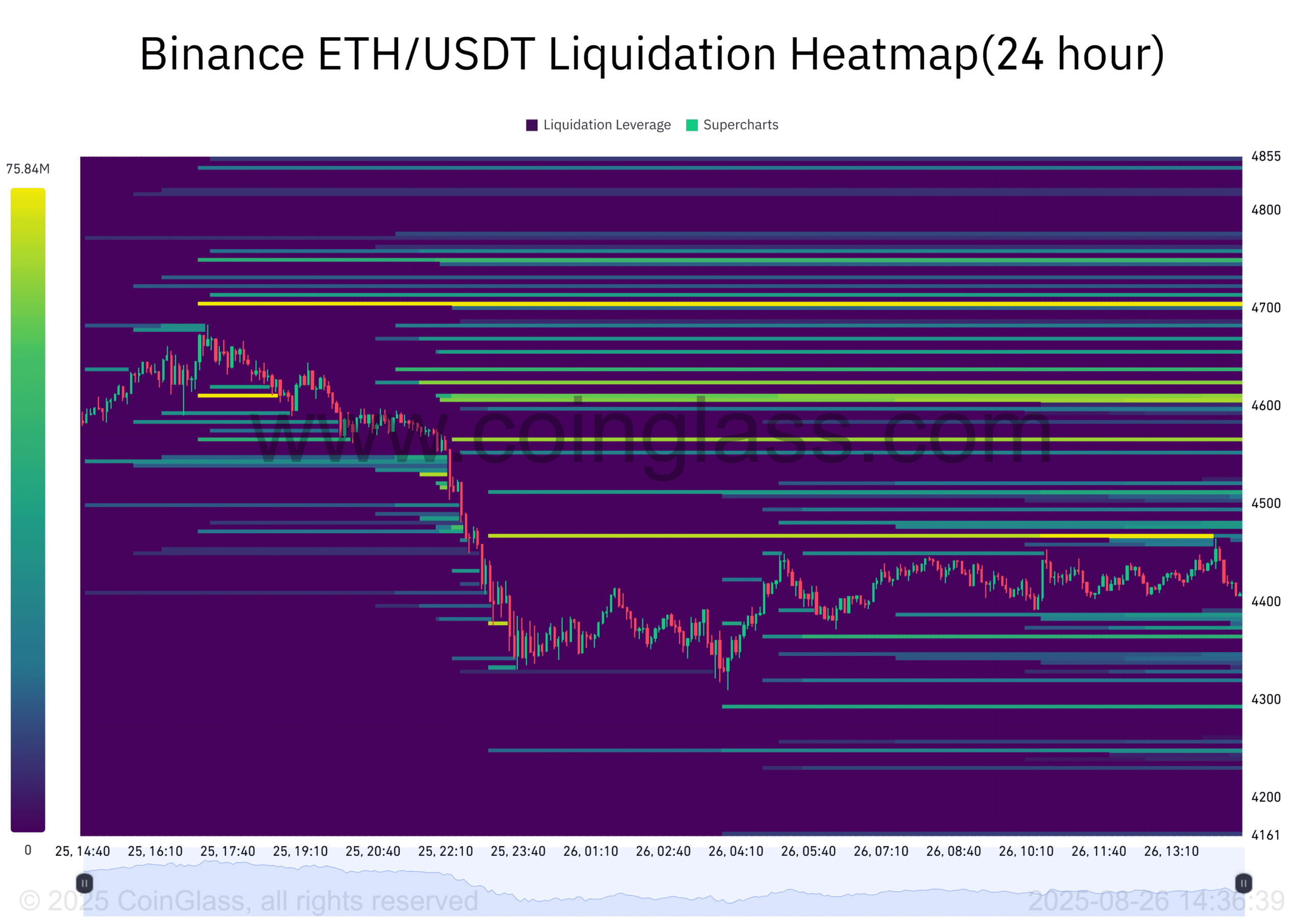La heatmap di liquidazione di ETH mostra che intorno ai 4.700 dollari c'è un'area di liquidazione densa. Se gli acquirenti riescono a rompere, potrebbero innescare liquidazioni, portando a una nuova opportunità di aumento; al contrario, senza rottura, potrebbero verificarsi liquidazioni forzate e vendite massicce. Questa area rappresenta sia un'opportunità che un punto di rischio; se riusciranno a rompere, determinerà se il flusso di fondi ETF e la diminuzione delle riserve possono tradursi in un rimbalzo sostenuto.
