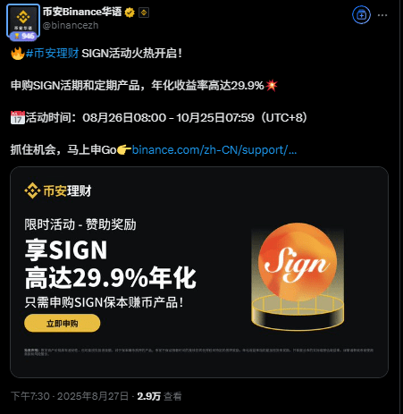 In realtà, consiglio a tutti di investire in modo programmato $SIGN ; da quando è stato lanciato, non è mai sceso sotto 0,06, e non c'è bisogno di preoccuparsi delle capacità del team, che ha già completato il riacquisto di 12 milioni di dollari di SIGN. La maggior parte dei membri della comunità ha scelto di mettere in staking, compreso me, e penso che l'investimento programmato + staking sia adatto a tutti. Sul sito ufficiale, il rendimento annuale dello staking è del 10%, ed è stato appena lanciato un prodotto di staking su Binance con un rendimento annuale del 29,9%; non ho idea di come perdere.