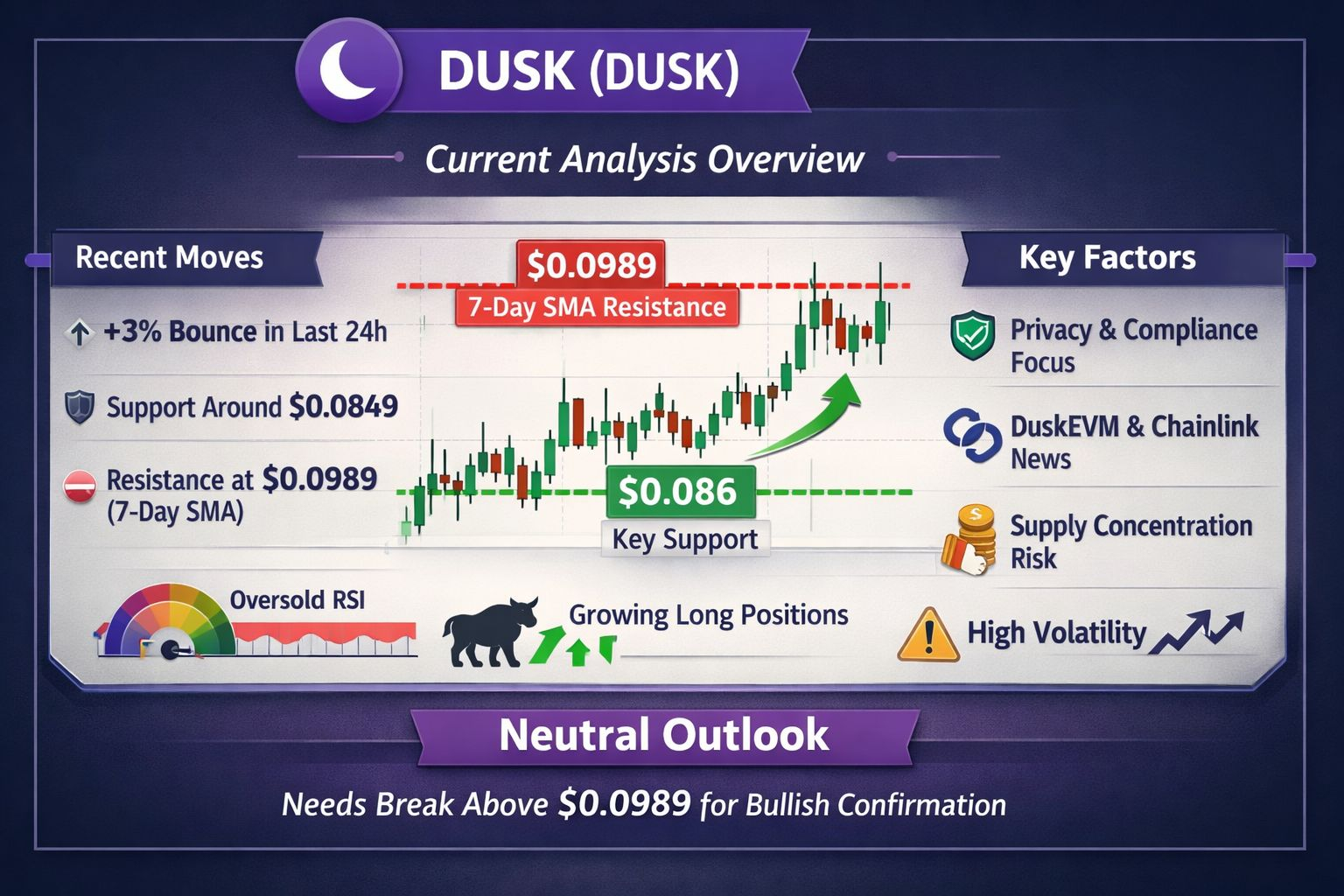Se DUSK si mantiene sopra i livelli chiave a breve termine, potrebbe testare la resistenza alla SMA a 7 giorni vicino a ~$0.0989. �