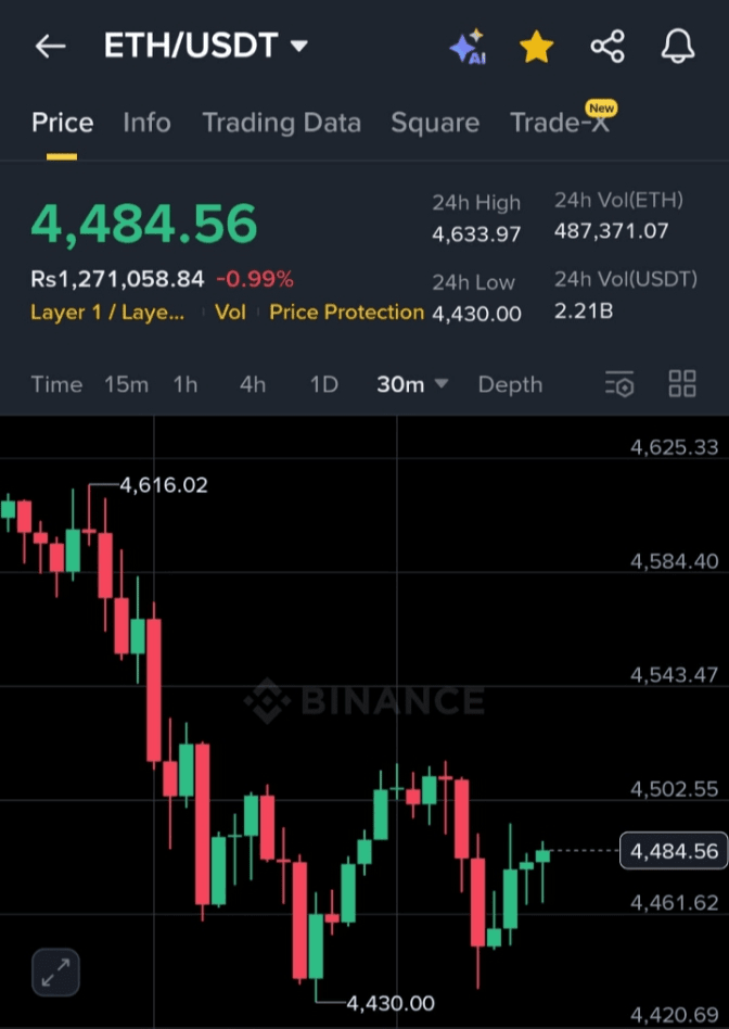 ($ETH ) sta affrontando un ritracciamento, attualmente scambiando a $4,484.56.