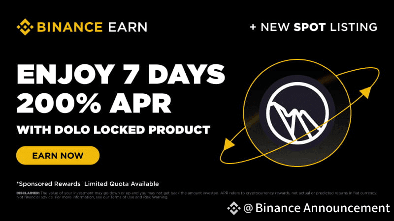 Per celebrare il nostro ultimo elenco di token per DOLO, Binance Simple Earn è lieta di lanciare una promozione per i Prodotti Bloccati DOLO Simple Earn. Gli utenti idonei possono iscriversi ai Prodotti Bloccati DOLO e godere di premi esclusivi del 200% APR per 7 giorni!