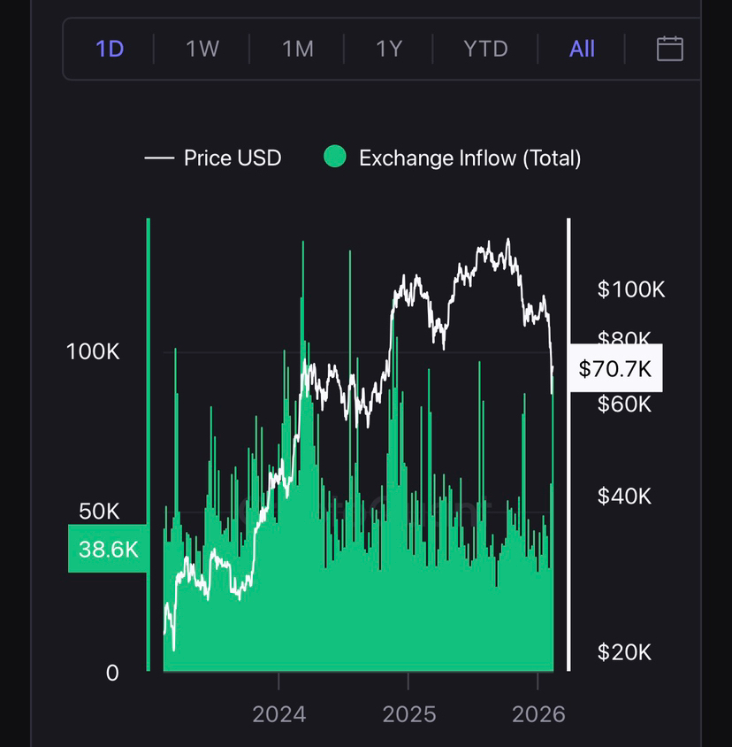 I picchi di afflusso maggiori spesso coincidono con forti cali, quando la folla smette di pensare in termini di strategia a lungo termine e si concentra esclusivamente sulla conservazione del capitale. Il paradosso è che la pressione di vendita non dura per sempre. Una volta che la maggior parte dei partecipanti più paurosi ha venduto, l'offerta inizia a esaurirsi.