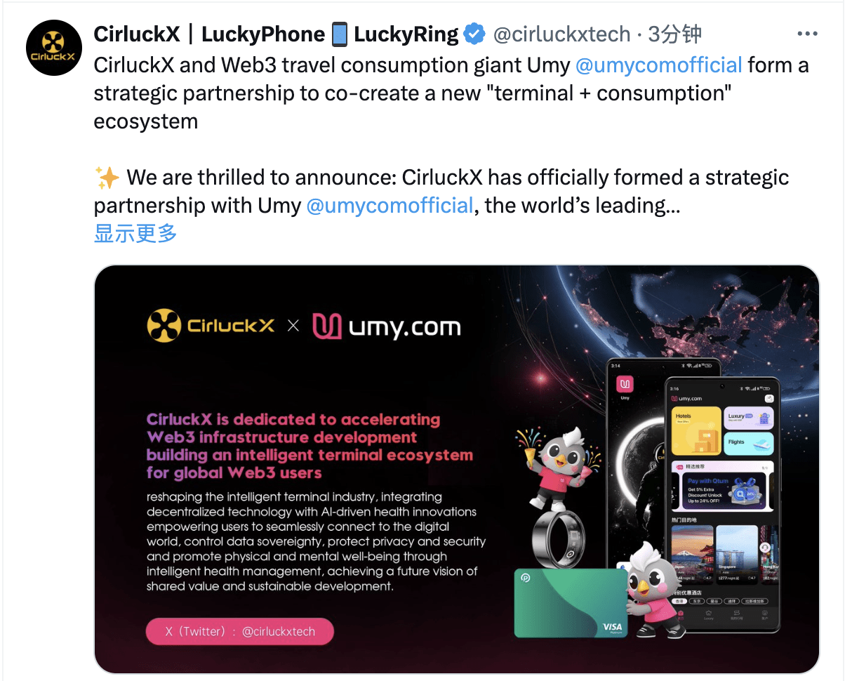 【🚀 Annuncio della collaborazione strategica|CirluckX LuckyPhone × Umy apre una nuova era del consumo di viaggio Web3!】