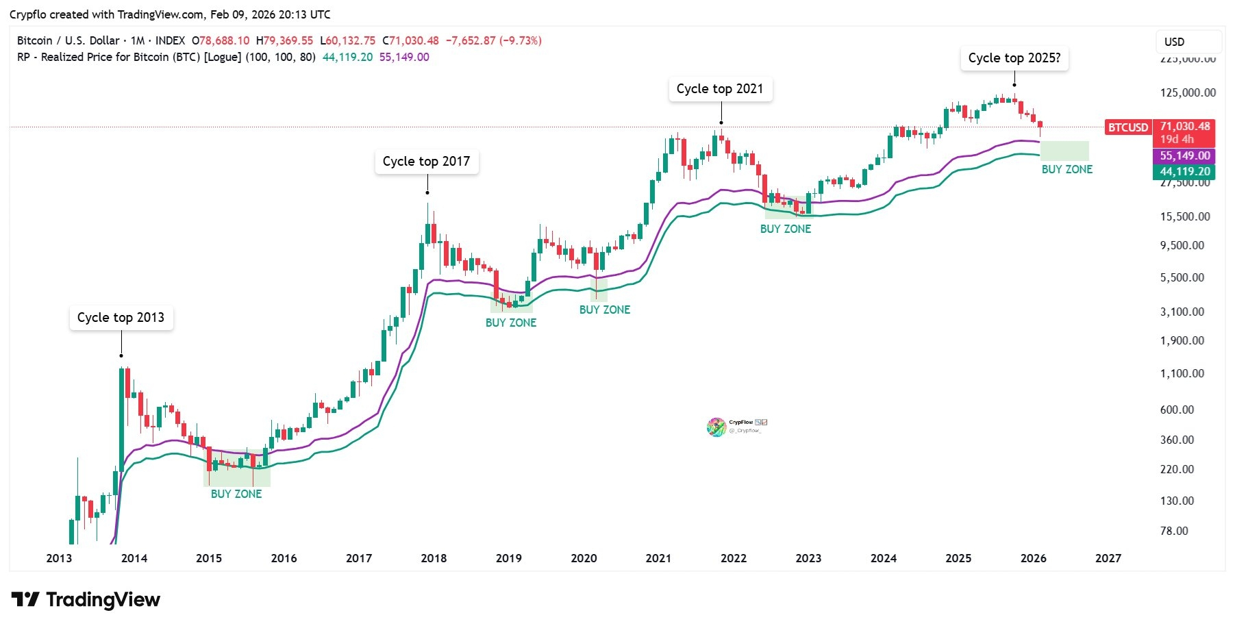 Ако се чудите дали Bitcoin е скъп или вече е "на промоция" – има един индикатор, който работи като часовник от 2013 г. насам. Казва се **Realized Price** (Реализирана цена).