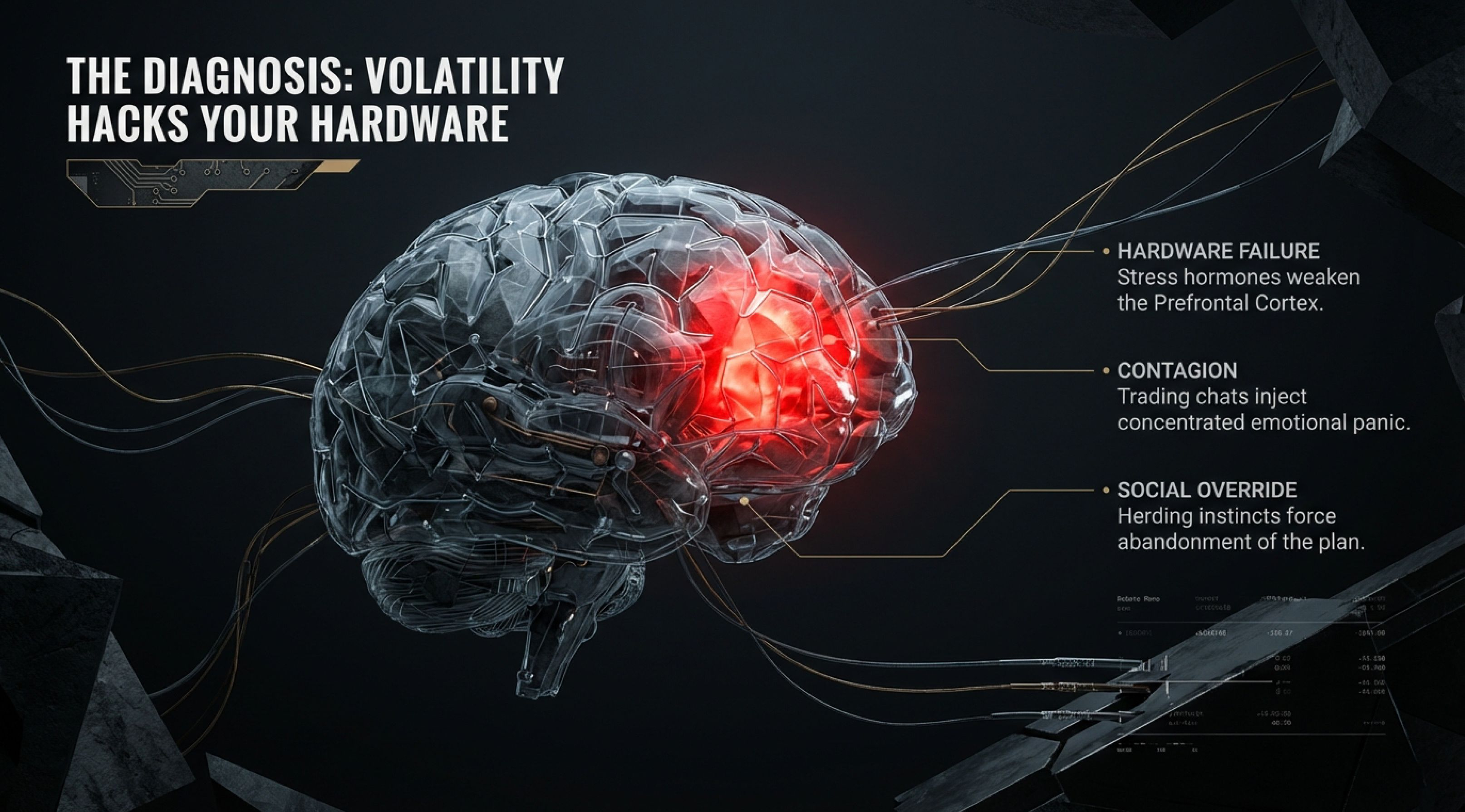 Le parti 1-3 hanno spiegato perché succede: lo stress dirotta il tuo centro di pianificazione, le chat iniettano panico attraverso lo schermo, l'aggregazione dà al tuo cervello il permesso di seguire la folla.