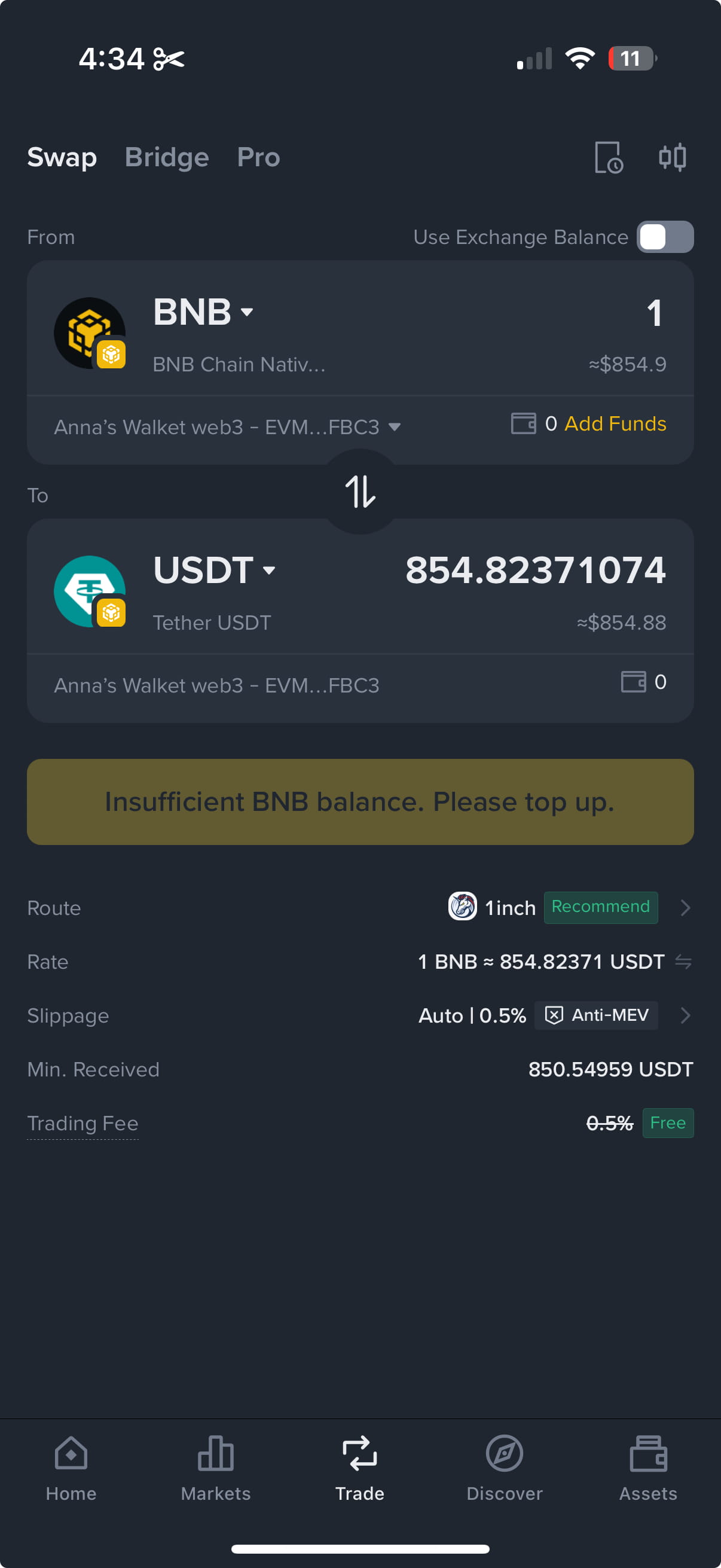 La soluzione di Binance: il portafoglio Web3 integra un DEX e un aggregatore di bridge, consentendo scambi crosschain senza lasciare l'app.