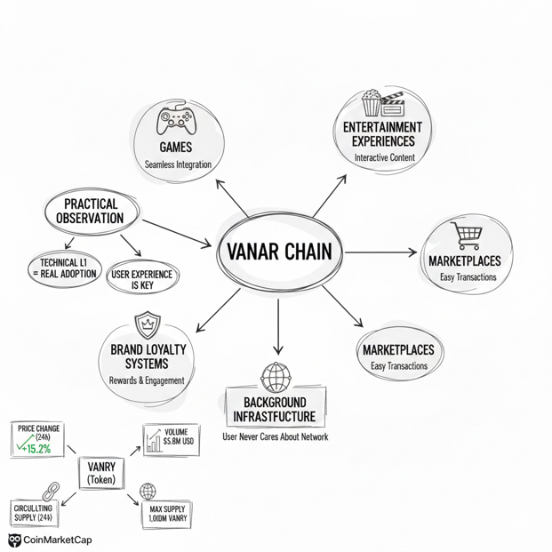 Vanar Chain reads like a project that started with a very practical observation, which is that “real adoption” does not happen because an L1 is technically impressive, it happens when the blockchain becomes background infrastructure for products people already understand, like games, entertainment experiences, brand loyalty systems, and marketplaces where the user never has to care what network they are touching.