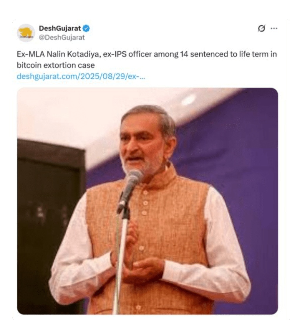 Un tribunale indiano anti-corruzione ha condannato 14 individui, tra cui 11 funzionari di polizia e un ex membro dell'Assemblea Legislativa del Bharatiya Janata Party (BJP), all'ergastolo in un caso che coinvolgeva il rapimento e l'estorsione di criptovaluta da un imprenditore di Surat nel 2018.