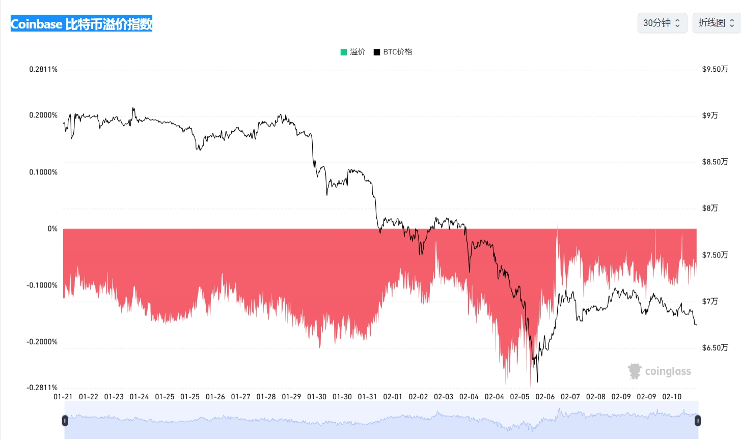 Coinbase 比特币溢价指数-目前的主要抛压还是来自美国投资者