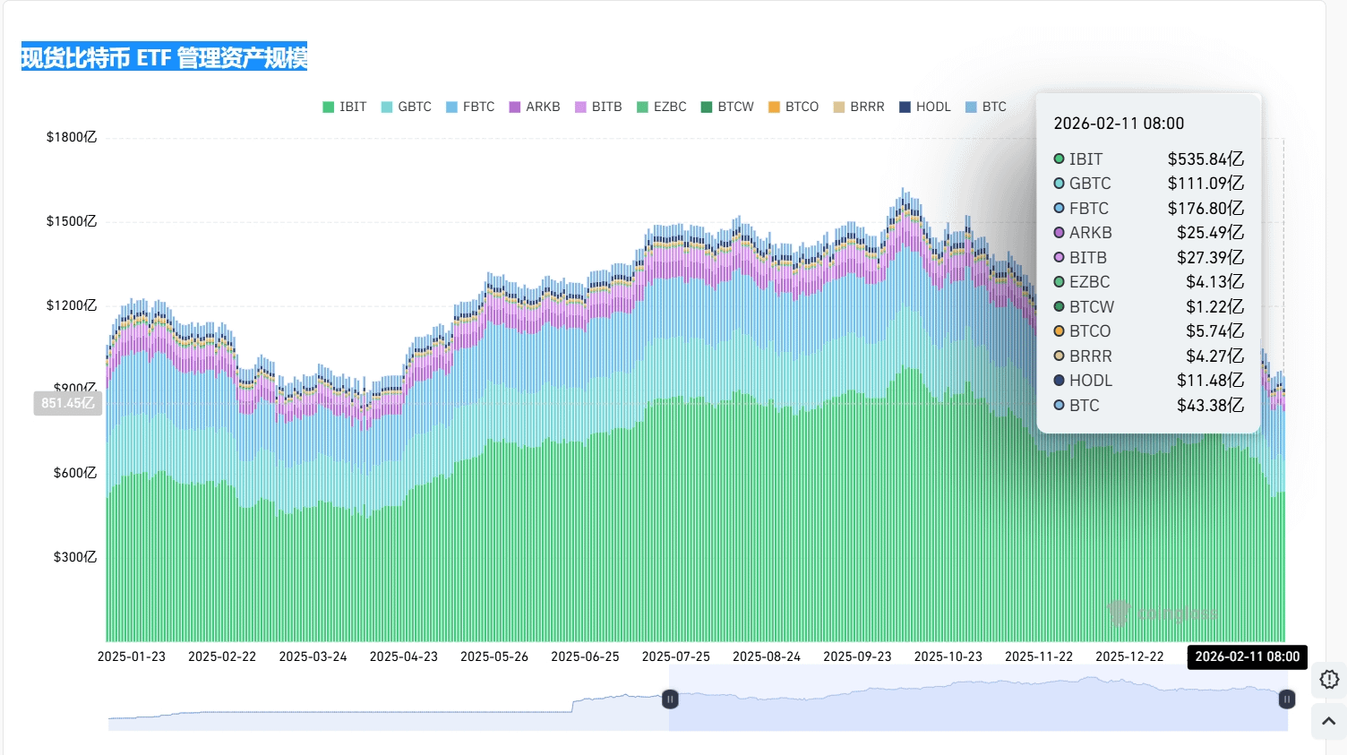 ETF的资金流向提供了最直接的显微镜。尽管市场弥漫悲观情绪,但昨日比特币现货ETF仍保持净流入(如ARKB净流入6853万美元,FBTC净流入5692万美元)。这说明,面向长期配置的“傻钱”(Smart Money)并未离场而且还在持续的增持,他们正在用真金白银进行“定投式”的底部确认。