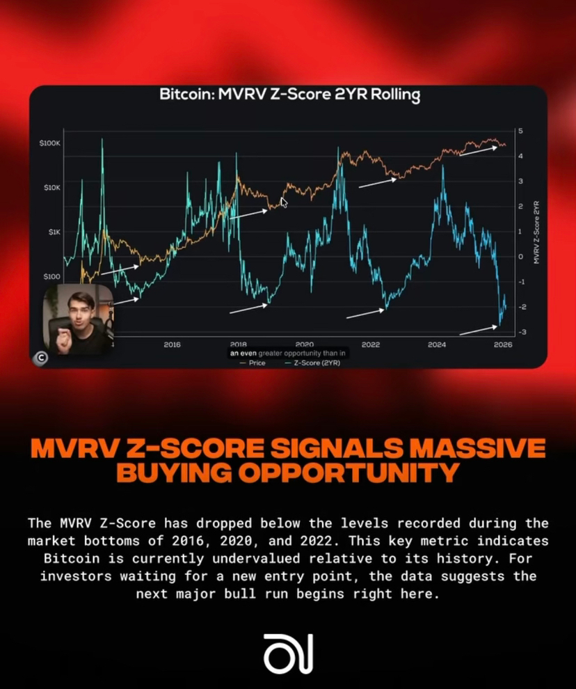 7 Bitcoin just flashed a historic buy signal as the MVRV Z-Score dropped below levels seen during the market bottoms of 2018, 2020, and 2022. This key metric suggests that BTC is currently significantly undervalued relative to its history.