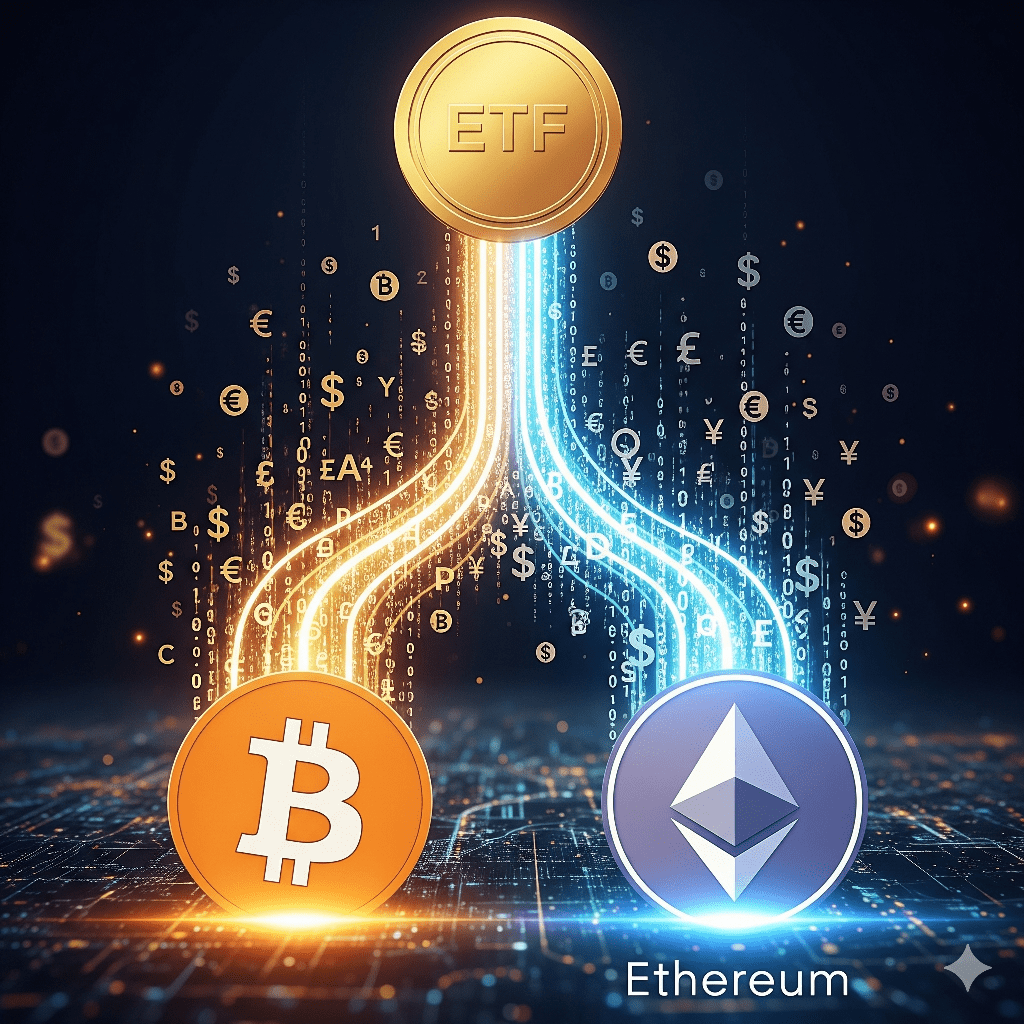 Il grande motore di questo cambiamento è il nuovo denaro che affluisce attraverso gli ETF (Exchange-Traded Funds) e gli investitori istituzionali che acquistano titoli di stato. Questi grandi flussi istituzionali hanno accesso diretto a Bitcoin ($BTC ) ed Ethereum ($ETH ), ma non al mondo più ampio delle piccole altcoin. Ecco perché stiamo vedendo massicci pump in BTC ed ETH mentre molte altcoin rimangono indietro.
