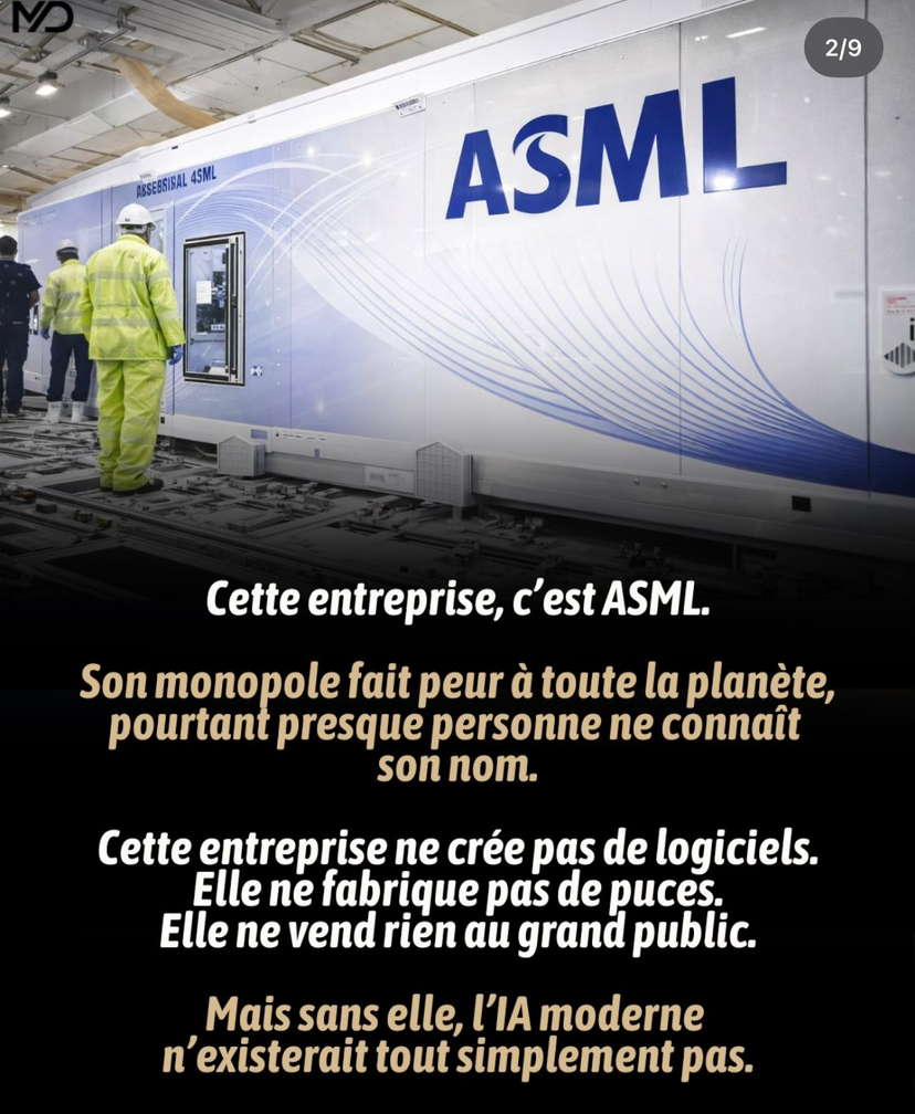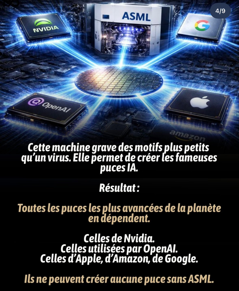 Sans ASML, aucune puce IA avancée ne peut être fabriquée : toutes dépendent de ses machines uniques à plus de 150 M$.