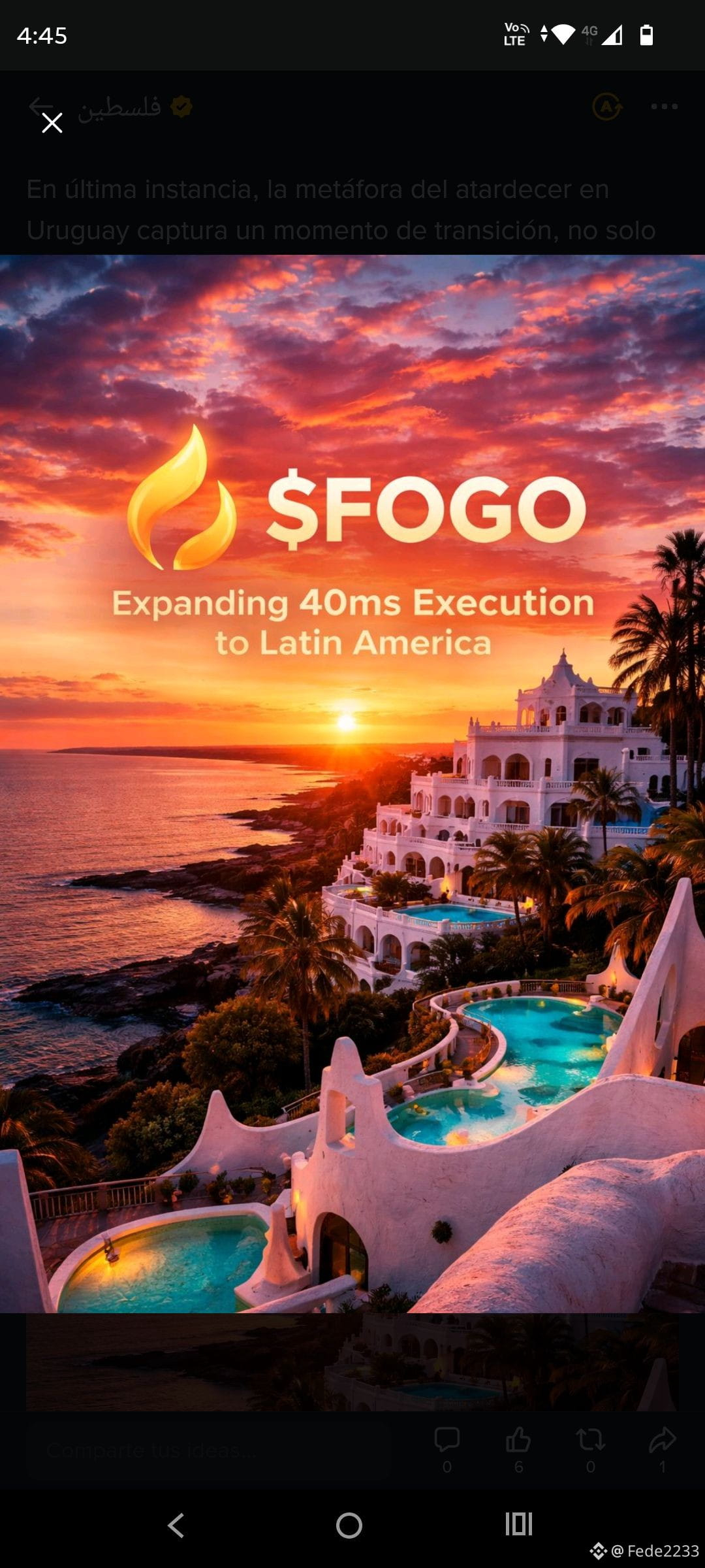 @Fogo Official se está posicionando de manera constante como una blockchain de alto rendimiento de próxima generación, y su narrativa de expansión simbólica hacia América Latina refleja una visión estratégica más amplia. El concepto de un $FOGO 'Uruguay Sunset Expanding 40ms Execution to Latin America' representa más que un lenguaje de marketing; refleja la intención del proyecto de capturar mercados cripto emergentes donde la adopción de activos digitales está acelerándose. América Latina se ha convertido en una de las regiones de más rápido crecimiento en el uso de blockchain debido a los desafíos de inflación, la demanda de remesas y la creciente penetración de fintech. Al dirigirse a esta región, FOGO señala confianza tanto en su tecnología como en su hoja de ruta de escalabilidad global.