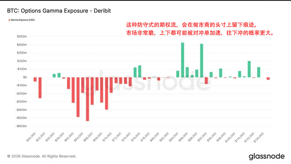 做市商的gamma结构到现在都没缓过来。空gamma的状态下,涨了要追买,跌了要追卖——结果是价格非常脆,上下都可能被对冲单加速。