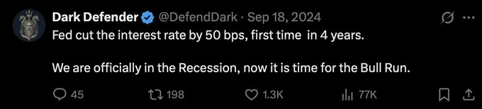 Lo scorso settembre tutti piangevano “rug pull” — ora inseguono candele verdi 😂