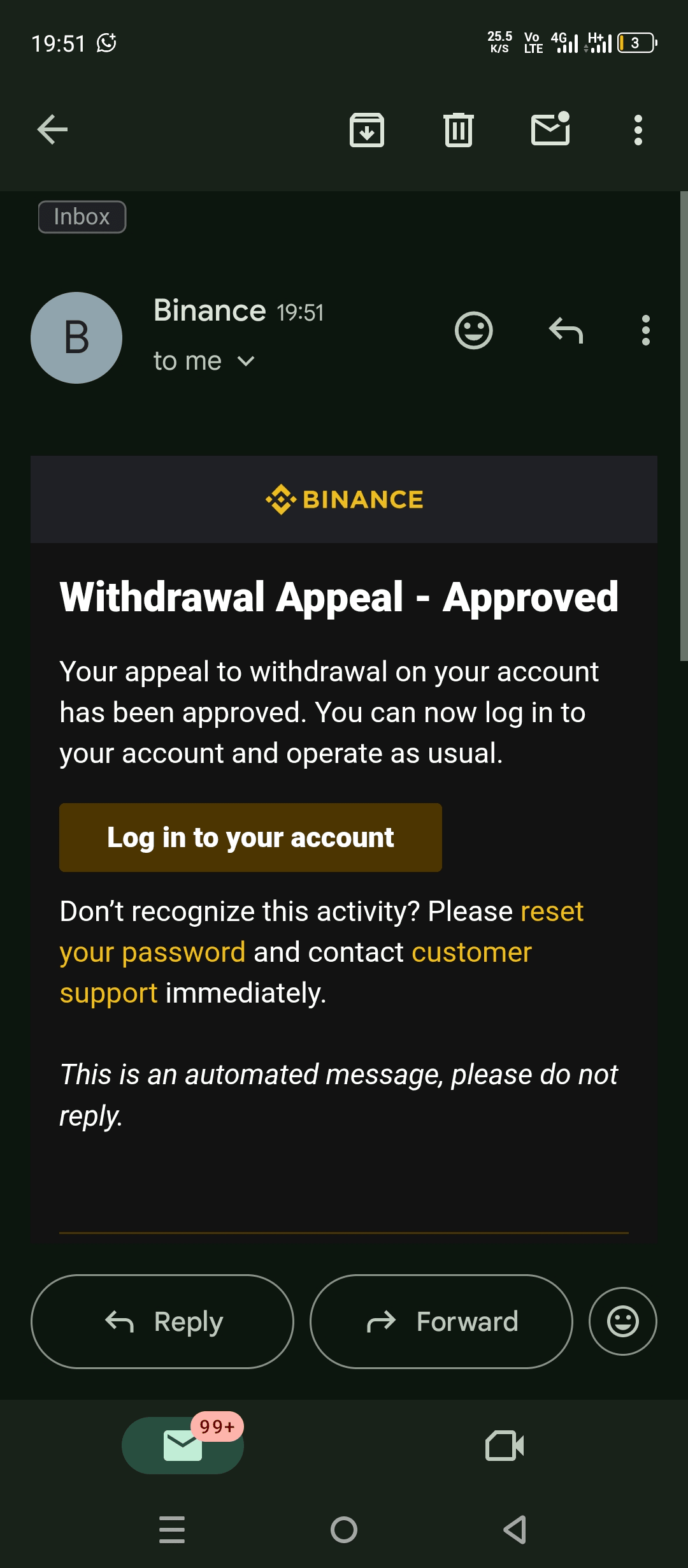 Ma mi ha convinto a fare appello a Binance per sbloccare il prelievo.. Ohh sono stata truffata 😵