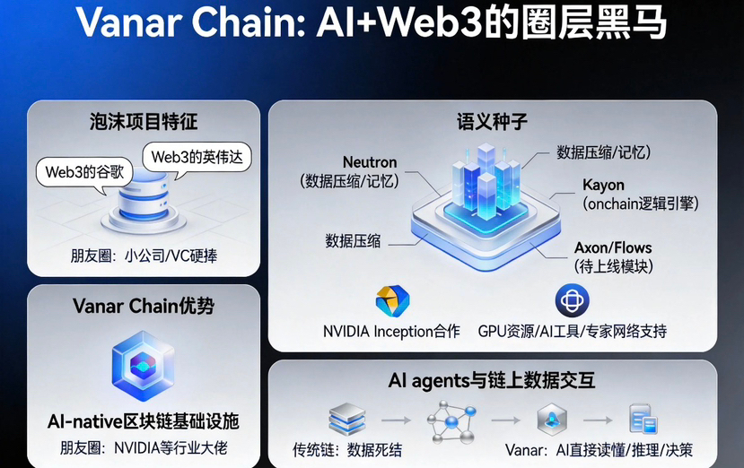 在币圈,判断一个项目能不能活过下一轮牛市,就看它的朋友圈是谁。很多项目天天吹自己是“Web3的谷歌”、“Web3的英伟达”,结果你一翻合作伙伴列表,全是些没听说过的小公司,VC塞钱硬捧的壳子。牛市一到,叙事拉满,价格飞天;熊市一来,生态空荡荡,项目直接原地蒸发。我见过太多这样的了,表面光鲜,里子全是泡沫但最近我深度挖了$ VANRY ,Vanar Chain的项目,说实话,它的圈层让我眼前一亮。这不是那种空喊口号的货色,而是真刀真枪和大佬们绑在一起干活的。@undefined 的生态,我从官网到推特,从合作伙伴到技术白皮书,翻了个遍,越看越觉得,这玩意儿有戏,能在下一轮牛市里站稳脚跟,甚至成为AI+Web3里的一个黑马。