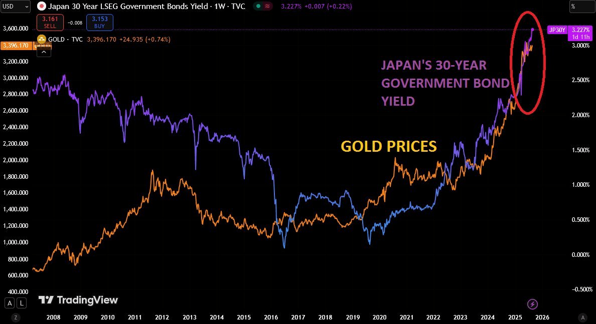 Secondo la Kobeissi Letter, lo sviluppo del prezzo dell'oro è anche fortemente correlato ai rendimenti obbligazionari giapponesi, sottolineando la sua crescente importanza globale.