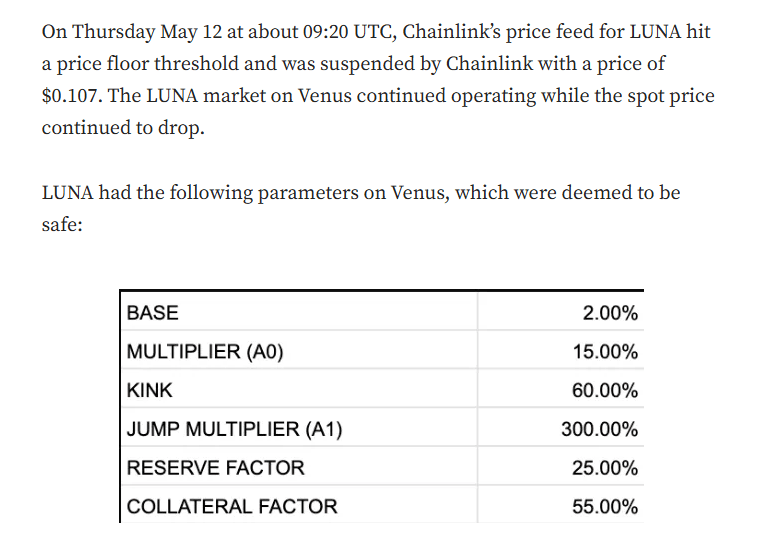 Già nel 2021, a causa dell'evento LUNA e dei problemi con l'oracolo, Venus ha generato un enorme debito cattivo di fino a 77 milioni di dollari, e ha rischiato di crollare. Tuttavia, di fronte alla crisi, il protocollo ha infine utilizzato il voto di governance della comunità per attingere ai fondi del tesoro del protocollo, coprendo completamente tutte le perdite.