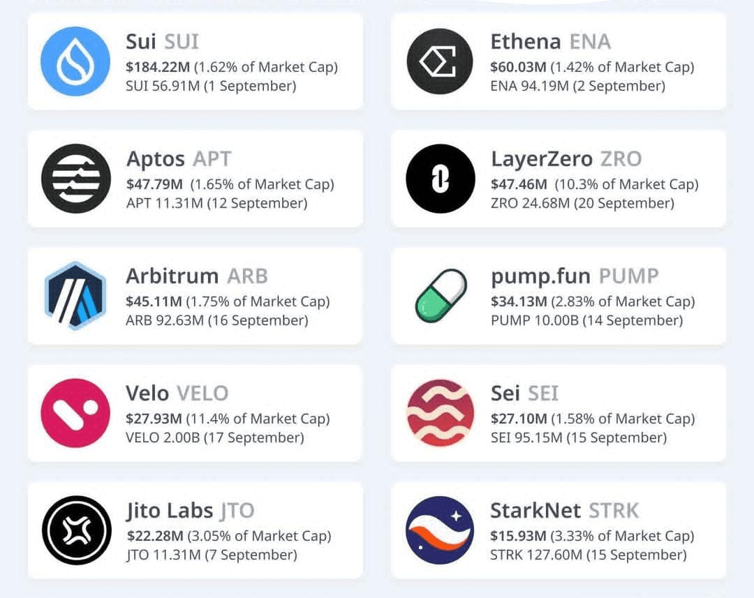 👉 In totale, $4,5 miliardi di valore di token saranno sbloccati questo settembre.