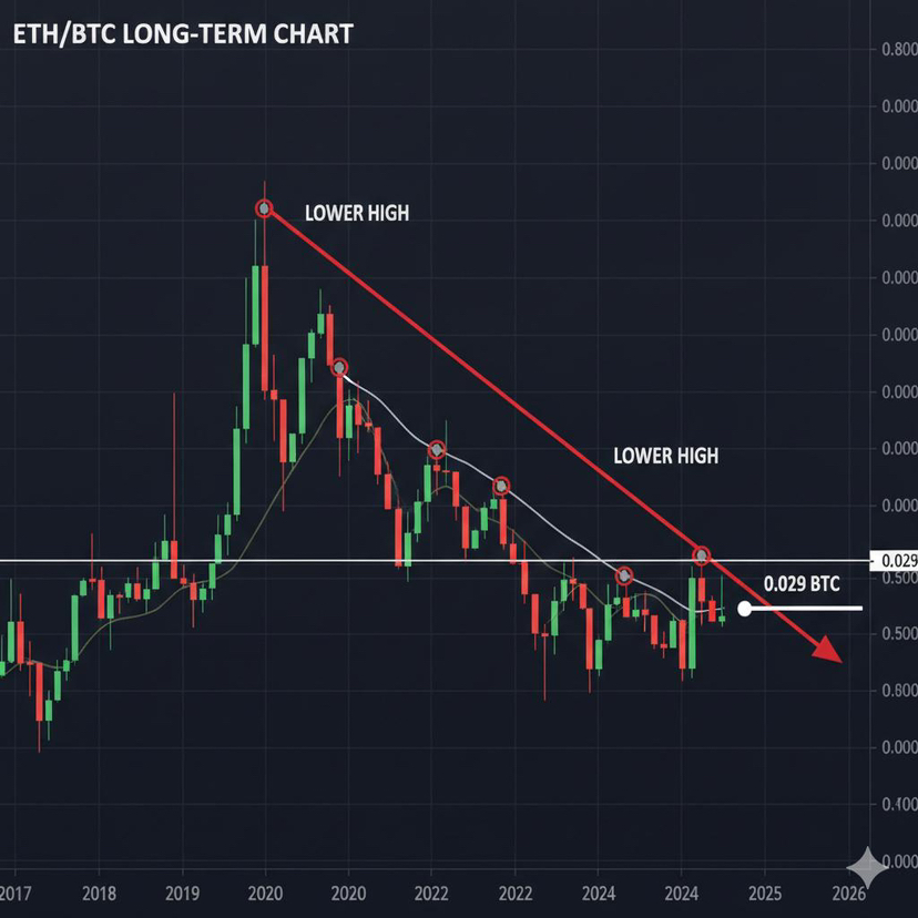 Fino a quando ETH/BTC non rompe quel tetto a lungo termine, grandi capitali continueranno a favorire Bitcoin durante fasi incerte. E questo importa.