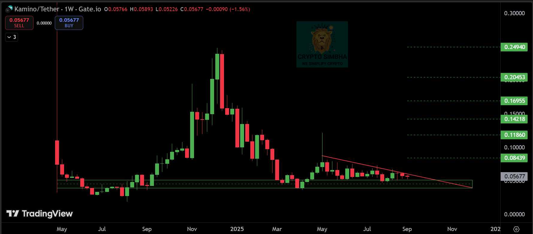 Il prezzo si sta comprimendo nella base di supporto multi-settimanale e potrebbe rimbalzare verso la linea di tendenza discendente/offerta. Un breakout confermato potrebbe aprire un movimento verso resistenze più alte. Puoi aprire una posizione long qui e aggiungere di più se il prezzo scende nel supporto o su una chiusura settimanale/giornaliera confermata sopra la linea di tendenza.