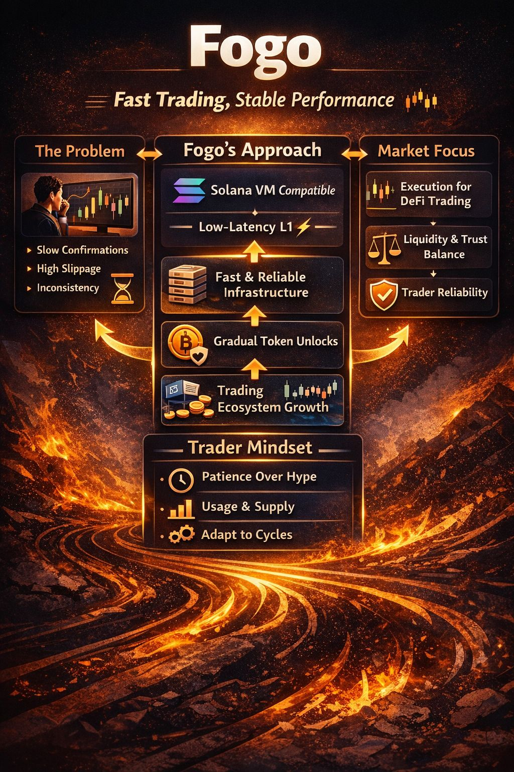 Every trader has felt that small moment of tension when placing an order on-chain. You see a price, you click, and then you wait. In that short gap, the market can move, fees can change, and what looked simple suddenly feels uncertain. Most people don’t describe it this way, but that delay creates emotional friction. It makes on-chain trading feel fragile. Fogo exists inside that gap. It is a high-performance Layer-1 built around the Solana Virtual Machine, and its goal is not abstract innovation. Its goal is to make execution feel steady, predictable, and closer to what traders expect from professional markets.