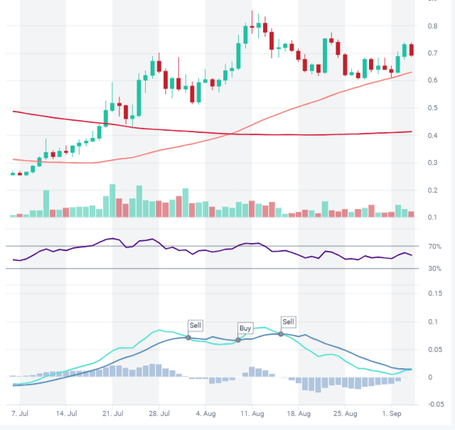 Zona di ingresso: $0.70 – $0.72 (dopo una chiusura giornaliera sopra $0.70 con forte volume).