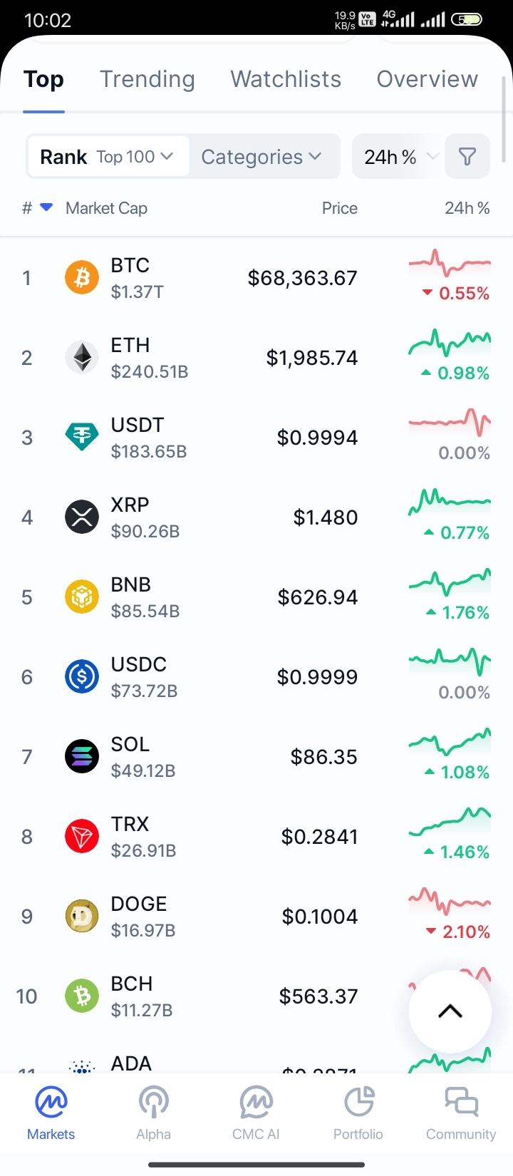 Prezzi: • Bitcoin — $68.497 (-0,14%)