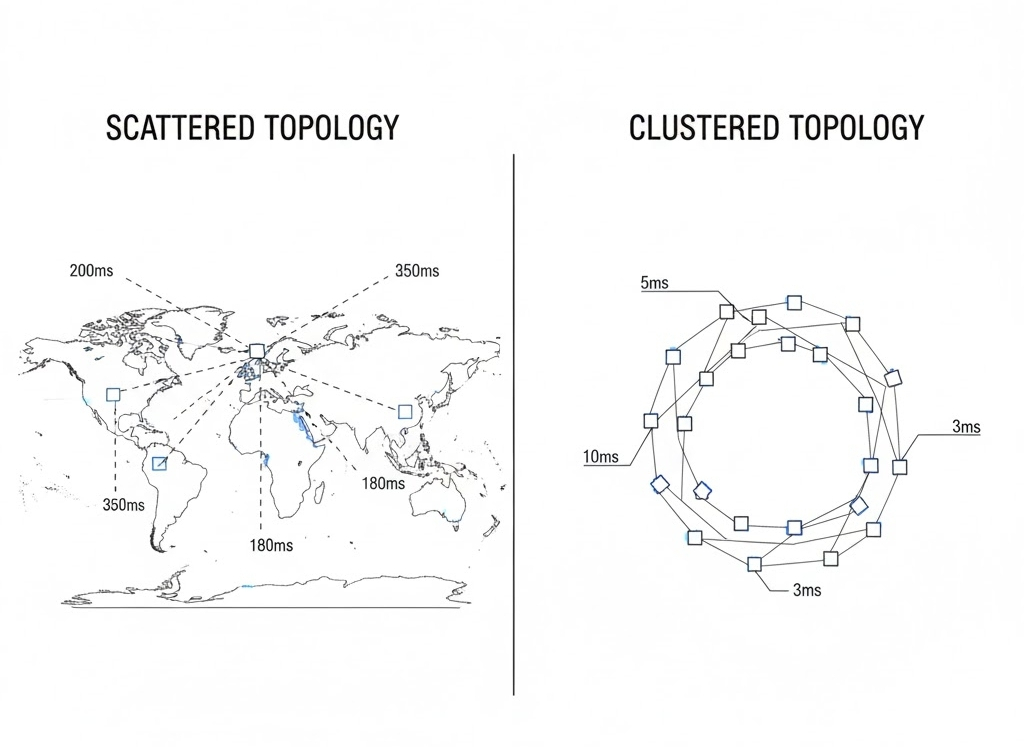 Blockchains are fundamentally coordination machines. Coordination speed depends on how fast messages propagate between validators. When nodes are scattered globally, physics becomes the bottleneck.