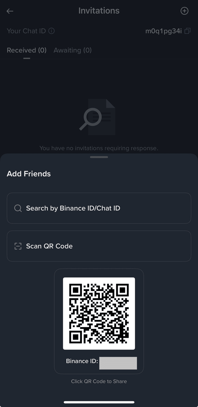 Passo 3: Scegli Aggiungi Amici. Puoi cercare per ID Binance/ID Chat o selezionare Scansiona Codice QR.